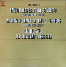 BARBER Piano Concerto WILLIAM SCHUMAN A Song of Orpheus LP Cleveland Orch, Szell