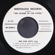 The Five Keys On Stage Capitol EP 1957 C'est La Vie-Dream-Let There Be You-All I