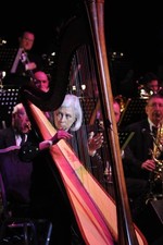 Harpist Catherine Michel performs with the Michel Legrand orchestr- Old Photo