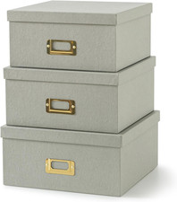 Gray Kraft Paper Boxes for Storage, Set of 3 Square Stacking Boxes with Lids and