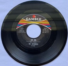 THE INTRUDERS-GAMBLE G-235-SAD GIRL-LETS GO DOWNTOWN-45RPM 7" 1969 FUNK SOUL VG