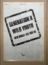 GENERATION X WILD YOUTH POSTER SIZED original PUNK music press advert from 1977