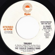 Charlie Daniels Band - Trudy - Used Vinyl Record 7 - 46 - Promo - C8100z