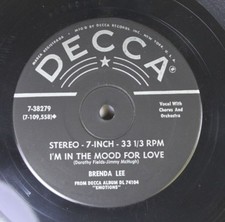 Pop 33 Rpm 45 Brenda Lee - I'M In The Mood For Love / Cry On Decca