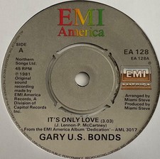 Gary US Bonds It's Only Love 7" EMI EA128 EX/VG+ 1987 picture sleeve has smal...