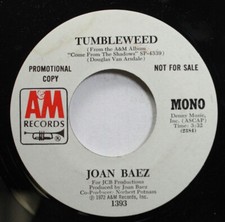 Rock Promo Nm! 45 Joan Baez - Tumbleweed / Tumbleweed On A&M Records
