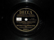 BING CROSBY & ANDREWS SISTERS-South America, Take It Away (1946) DECCA 10"