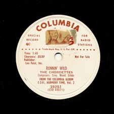 The CHORDETTES on 1951 Columbia 39251 Promo - Runnin’ Wild / Alice Blue Gown