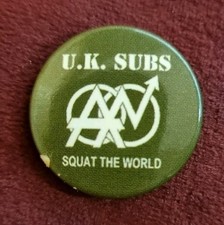 Vintage 25mm UK Subs Squat The World Pin Badge Punk Rare Collectable